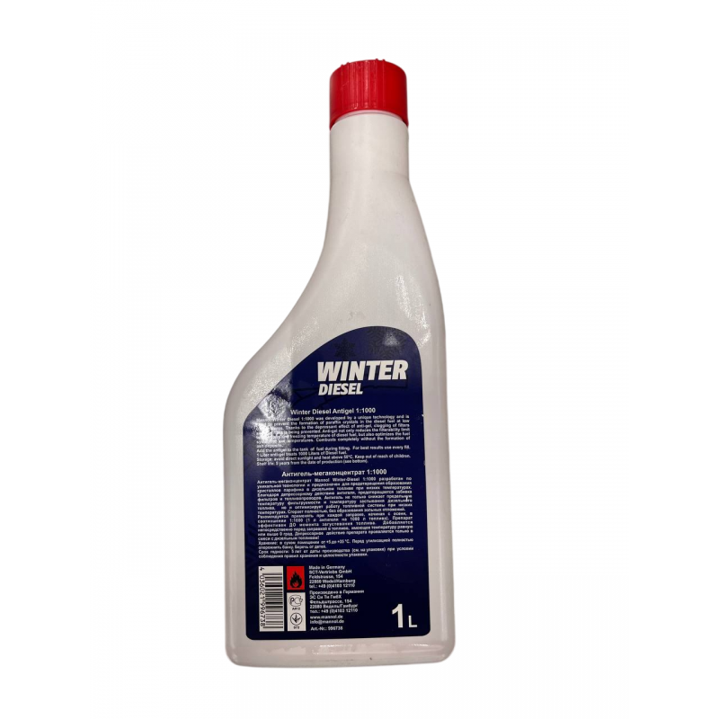 Дизельный антигель MANNOL – это высококачественная присадка, разработанная для предотвращения роста кристаллов парафина в дизельном топливе. Благодаря своему уникальному составу, она обеспечивает работоспособность дизельного топлива даже при температуре до -31°C. Это гарантирует быстрый пуск двигателя в морозную погоду, экономичность и надежность работы двигателя. Применение дизельного антигеля особенно актуально в условиях холодного климата. Присадка предотвращает увеличение вязкости дизельного топлива, что защищает топливный фильтр и топливопроводы от забивания. Рекомендуется для всех сортов дизельного топлива, включая зимние и арктические сорта. Для достижения оптимального эффекта добавлять антигель нужно в определённых пропорциях.